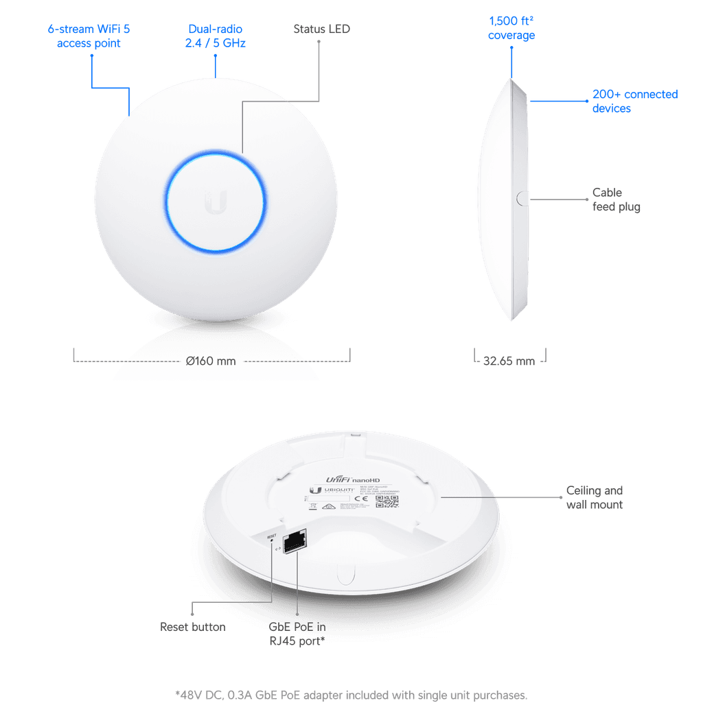 Description: Compact, ceiling-mounted WiFi 5 AP with 6 spatial streams ideal for smaller offices.